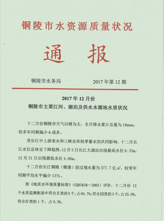 水资源质量状况通报(2017年12月)