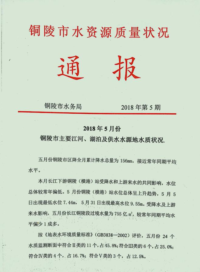 5月份水资源质量状况通报