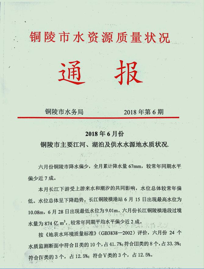 6月份水资源质量状况通报