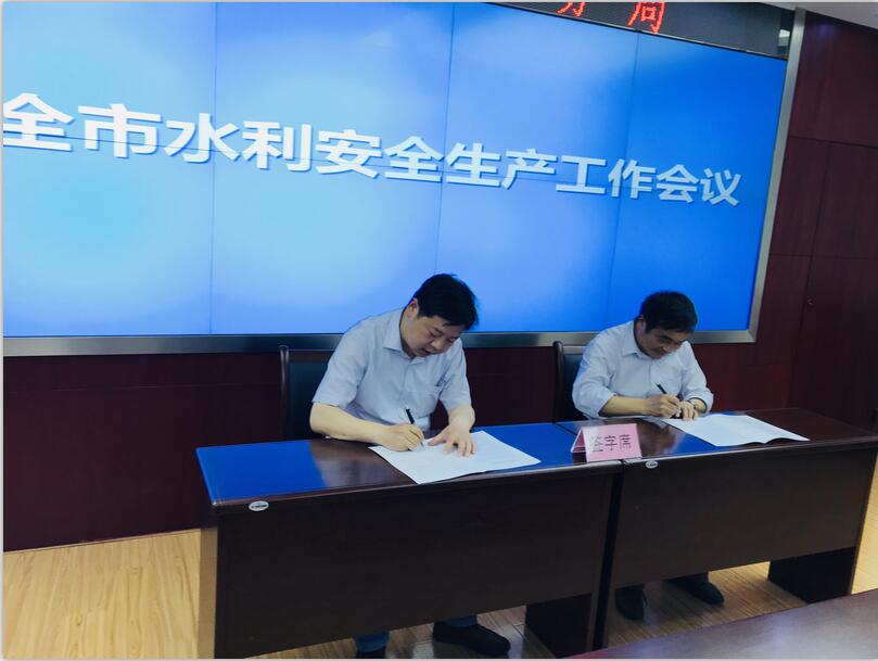 局党组书记吴峰分别与县、区水利部门主要负责人签订2018年安全生产目标管理责任书,并就贯彻本次会议主要精神也对县区水利部门提出意见和要求。