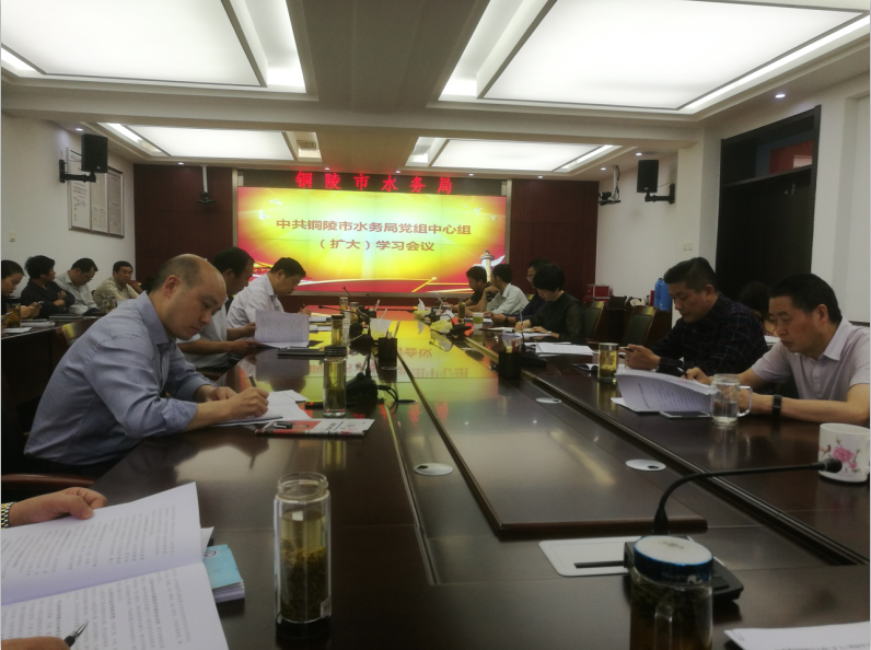 5月11日,市水务局党组召开中心组(扩大)理论学习会议,会议由副局长周根东主持,局机关及局属单位全体干部参加学习。会议传达习近平总书记在纪念马克思诞辰200周年大会上的讲话;观看《不忘初心 牢记使命 永远奋斗》教育片。学习全市防汛抗旱工作会议精神;结合我市汛期值班工作,局长王友贵通报全省防汛值班抽查情况。