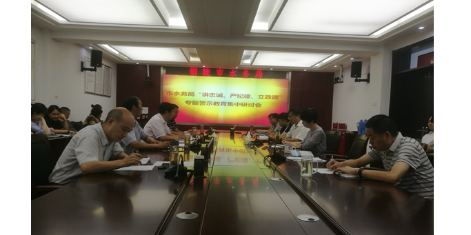 为推进“讲忠诚、严纪律、立政德”专题警示教育活动扎实深入开展。7月20日下午,市水务局党组召开中心组理论学习扩大会暨“讲严立”专题警示教育集中研讨会,全体干部职工参加了会议,由党组成员、副局长周根东主持会议。